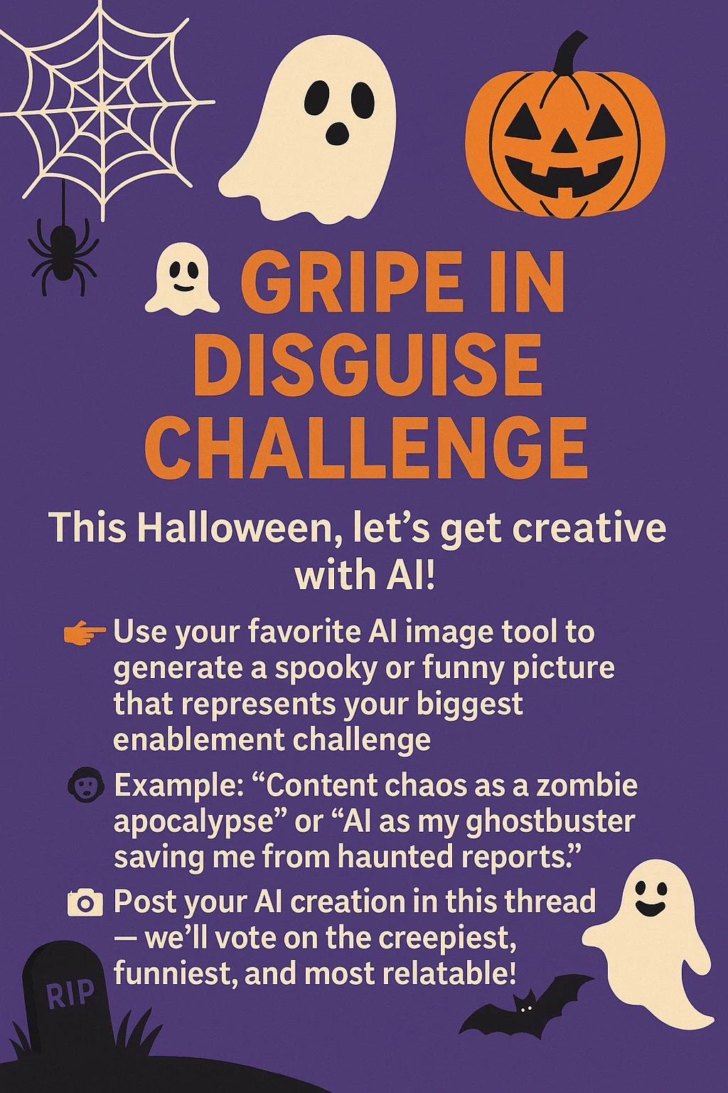 👉 Use your favorite AI image tool to generate a spooky or funny picture that represents your biggest enablement challenge.